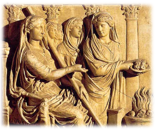 Virgilio nell’Eneide (VIII, 639, 641) narra la prima grande riconciliazione: quella di Romolo e di Tito Tazio dei Latini e dei Sabini. l due re cessata la lotta, davanti all’altare di Giove, armati e reggendo le patere (coppe) stavano ritti, il patto con sangue di una porca sacrificata stringevano. Quando Romolo e Tito Tazio pongono fine alla guerra, fondano la società romana completa, essi fanno, ciascuno, opera religiosa e istituiscono dei culti, ciascuno secondo la propria funzione. Mentre Romolo, però, istituisce un solo culto, quello di Giove, Tito Tazio ne introduce a Roma tutta una serie, di cui Varrone precisa l'elenco con quattordici divinità.