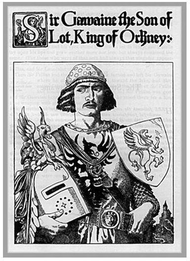 Galvagin è Gawain o Sir Galvano, il nipote di Artù perché figlio di sua sorella Morgause (Morgana) e del Re Lot di Orkney e Lothian, è indicato nei racconti come il migliore dei Cavalieri della Tavola Rotonda, la cui forza sembrava derivasse dal sole (era, infatti, invincibile di giorno e debole dopo il tramonto). Galvariun è Galeron o Sir Galleron di Galway; Che è Sir Kay l’Alienato, uno dei primi Cavalieri della Tavola Rotonda che divenne in seguito Siniscalco, figlio di Sir Ector il quale adottò Artù dopo che Merlino lo portò via dai suoi genitori naturali (Uther Pendragon e Igraine) e lo crebbe come un figlio.