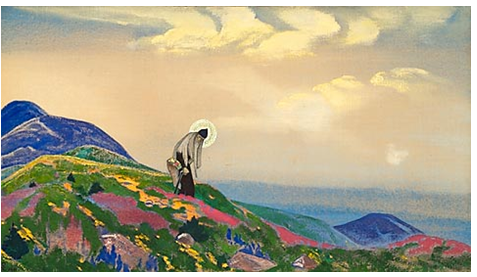 Figura 2. - N. Roerich - Donna in abito bianco che indica la via