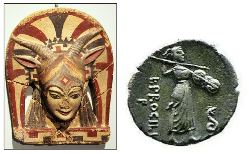 [5] Antefissa etrusca Giunone Sospita (pèropizia) dal Lazio, 500-480 a.C., Altes Museum, Berlino. https://it.wikipedia.org/wiki/Giunone_Sospita#/media/File:-0490_Juno-Sospita-Antefix_Altes_Museum_anagoria.JPG